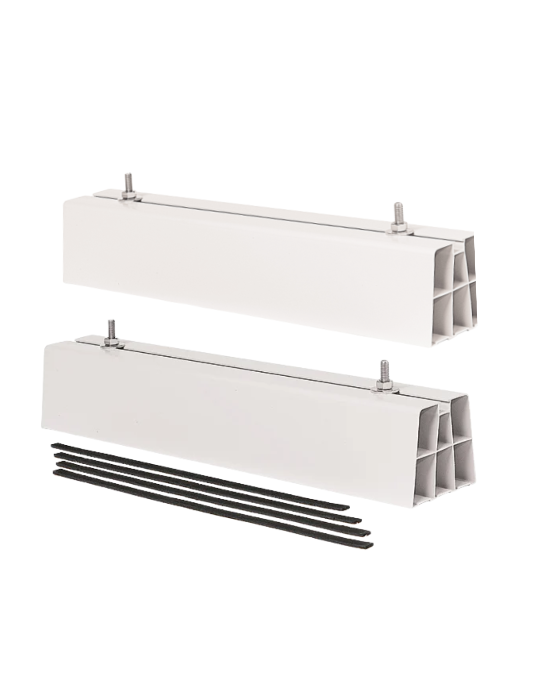 La struttura delle Vecamco Basi a pavimento è studiata per attenuare al massimo vibrazioni e rumori, migliorando il comfort acustico e riducendo l’usura dell’unità esterna. Il PVC utilizzato offre un’ottima resistenza agli agenti atmosferici, ai raggi UV e all’umidità, assicurando lunga durata anche in ambienti particolarmente esposti. Le basi sono predisposte per il fissaggio tramite viti nelle sedi apposite e permettono una rapida installazione senza necessità di accessori complessi.