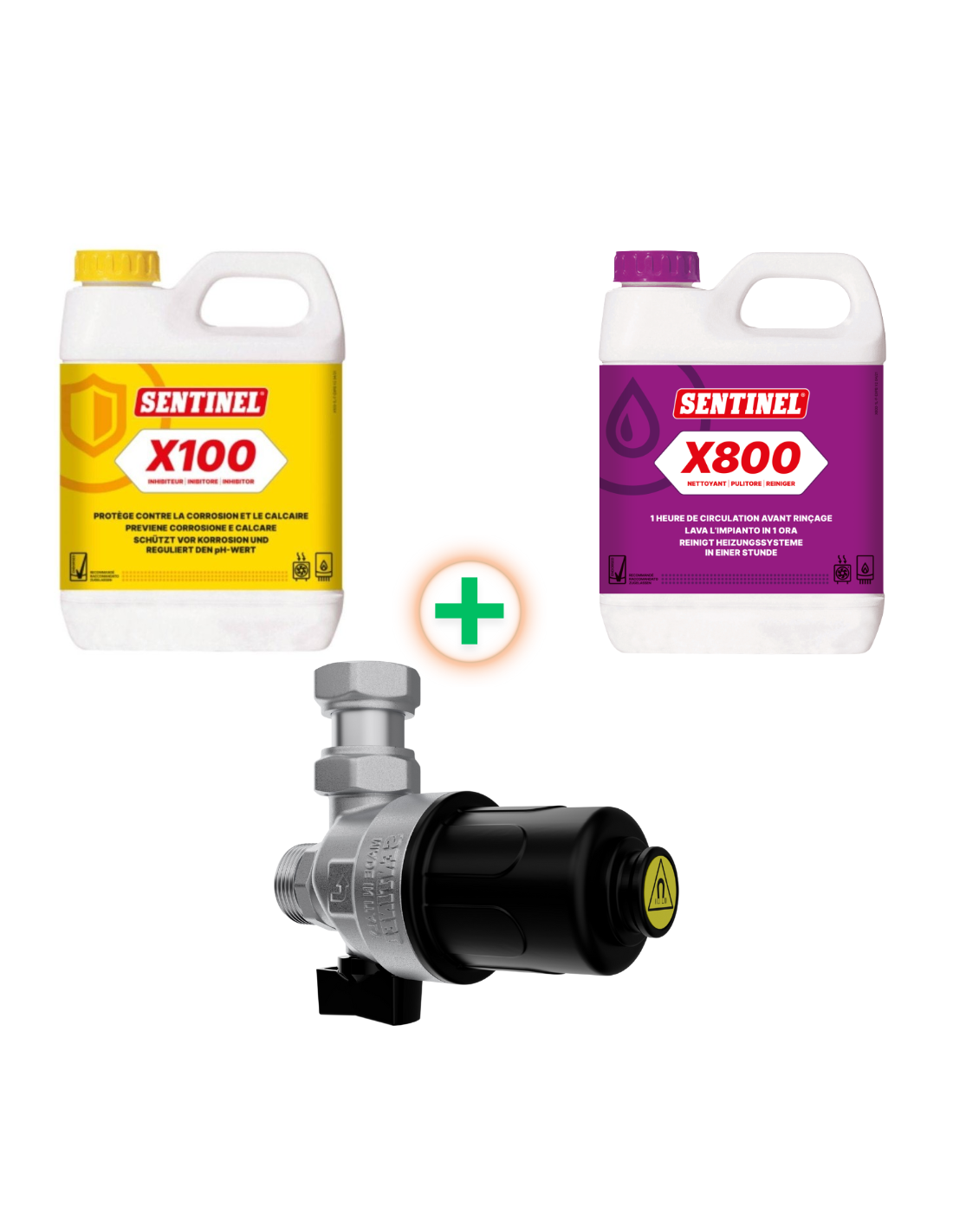 Include X100 Inibitore 1L, X800 Pulitore 1L, Vortex 100 Defangatore 3/4"