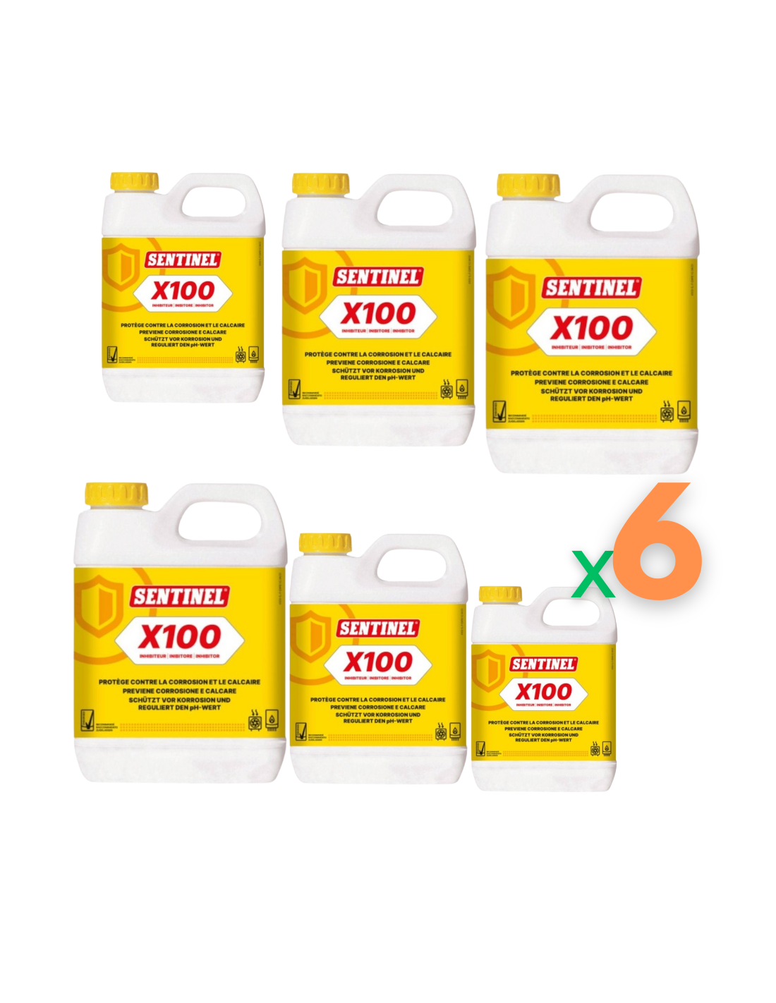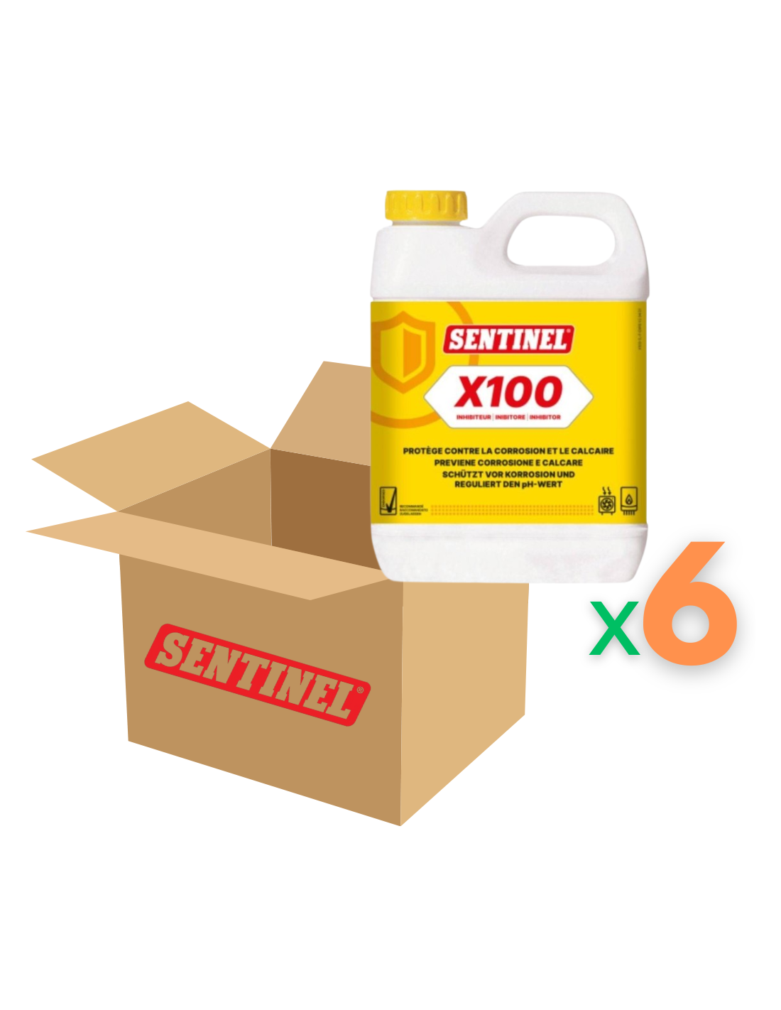 Il Sentinel X100 Inibitore è un prodotto professionale ideato per la protezione completa degli impianti di riscaldamento e la manutenzione termica preventiva. In questa confezione da 6 flaconi da 1 litro, offre la soluzione ideale per chi desidera garantire lunga durata ed efficienza a più sistemi contemporaneamente.