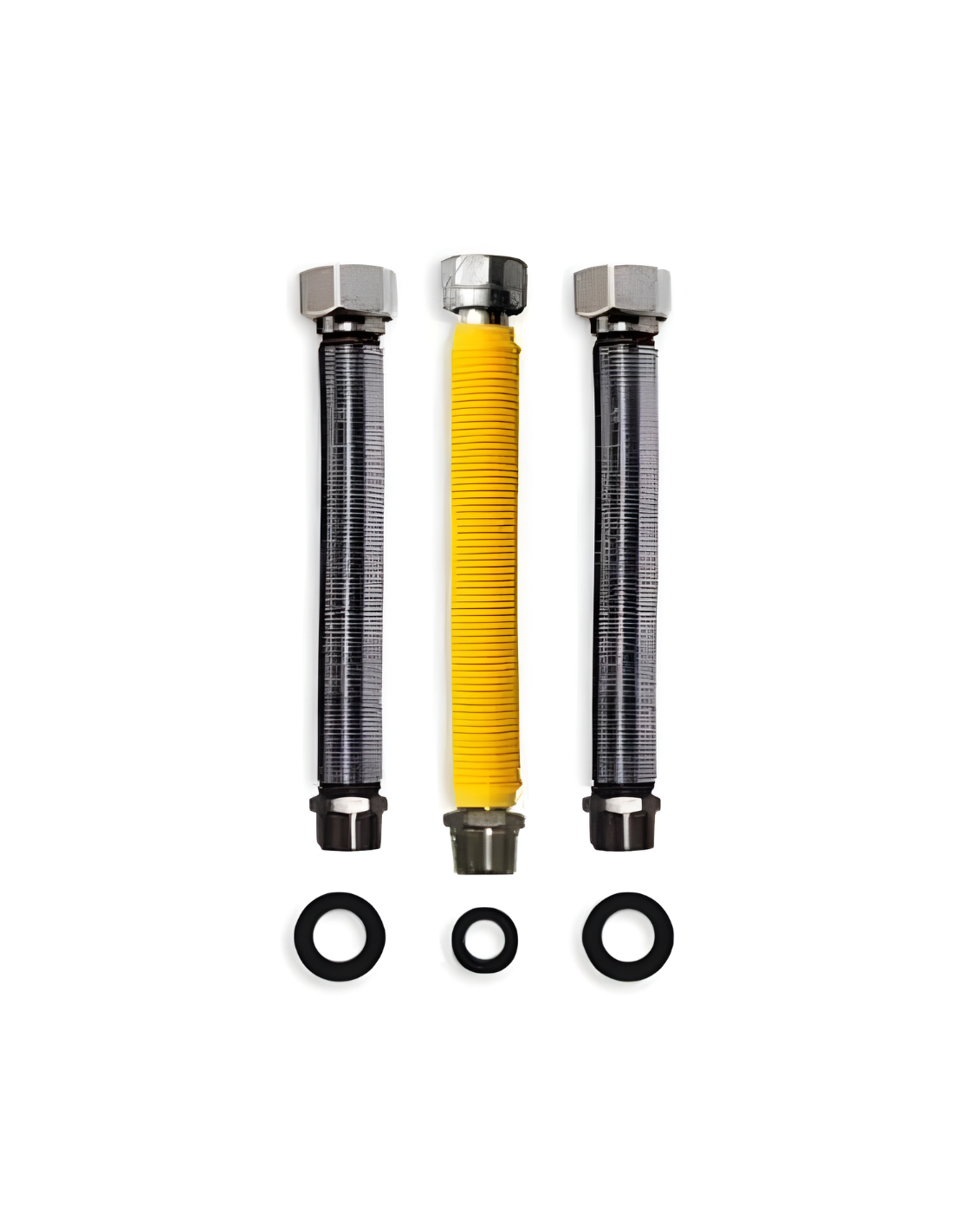 Il kit raccordi flessibili estendibili include tre tubi regolabili. La lunghezza varia da 20 a 40 cm. Questa caratteristica permette un’installazione precisa e senza stress. È possibile adattare ogni raccordo alle esigenze specifiche dell’impianto.
