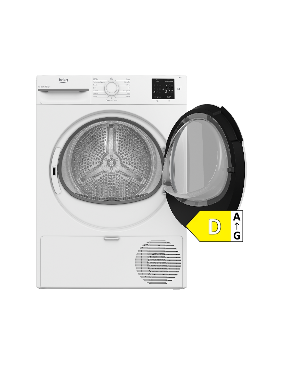 La tecnologia a Pompa di Calore asciuga a basse temperature. Protegge le fibre e riduce l’usura dei capi. Il motore Inverter assicura funzionamento stabile e silenzioso. Riduce vibrazioni e migliora la durata dell’elettrodomestico. La classificazione Classe D offre un buon equilibrio tra consumi e prestazioni quotidiane.