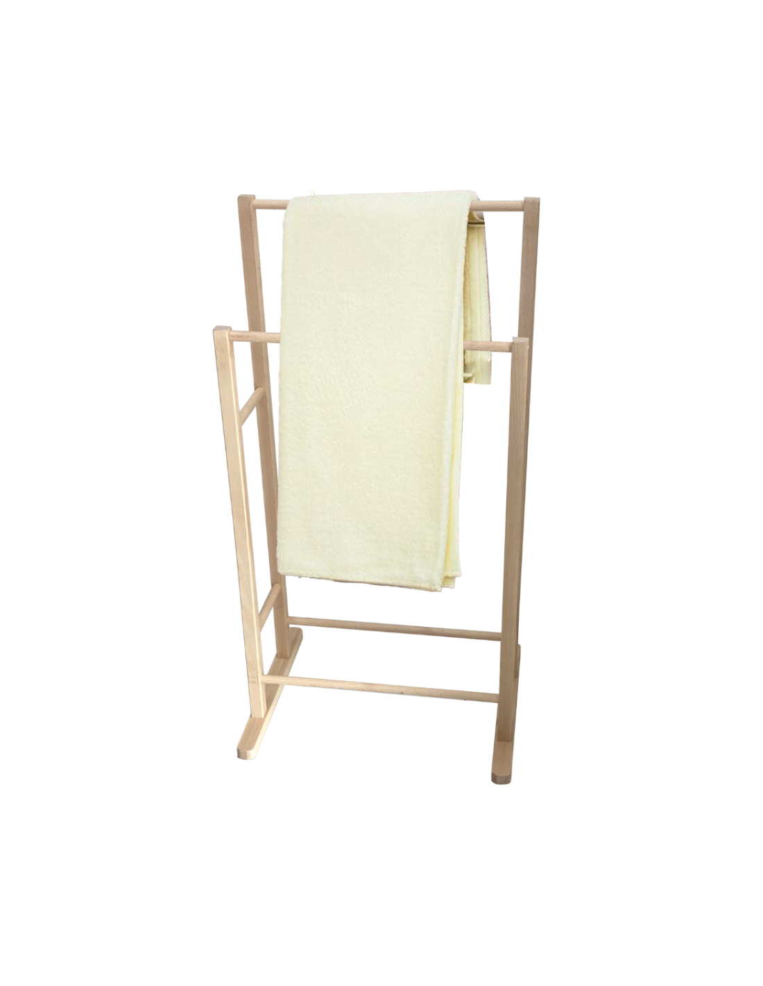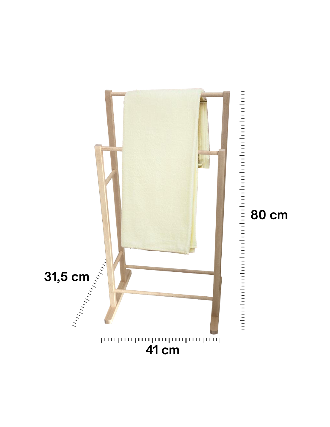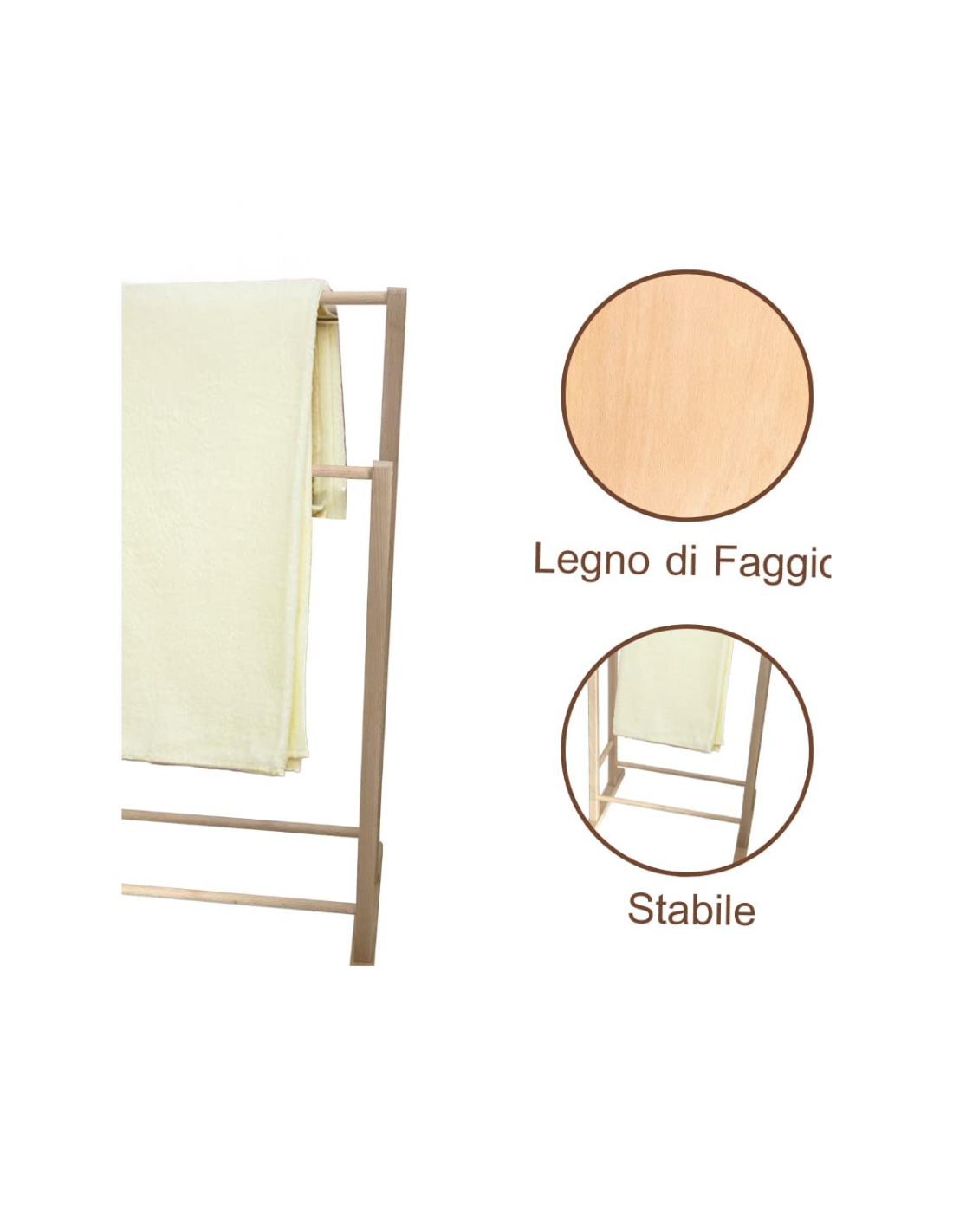 Interamente realizzato in legno massello di faggio, è leggero, resistente all’umidità e facile da spostare. Le 3 braccia orizzontali consentono di appendere e far asciugare più asciugamani contemporaneamente, garantendo una buona circolazione dell’aria e un’asciugatura più veloce. Il design minimalista e naturale lo rende adatto a qualsiasi stile d’arredo: dal moderno al rustico, dallo scandinavo all’industriale.