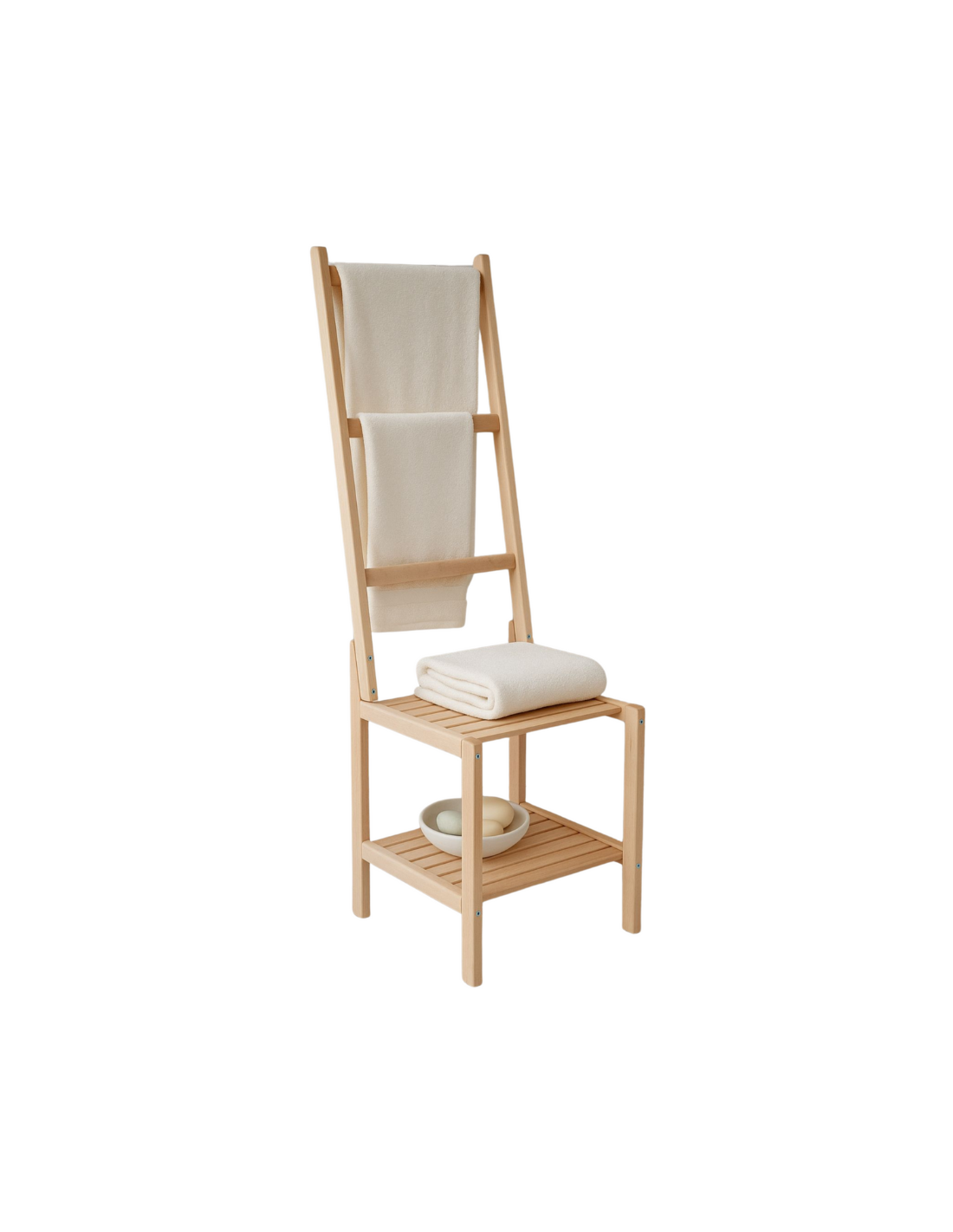Grazie alla struttura aperta e alla disposizione delle aste, la sedia portasciugamani in legno faggio Made in Italy garantisce una circolazione dell’aria ottimale, permettendo ai tessuti di asciugarsi in modo rapido e naturale. È perfetta per il bagno, ma anche per camera da letto, lavanderia o spa. Il legno di faggio, robusto e resistente all’umidità, rende questa sedia portasciugamani durevole e stabile nel tempo.