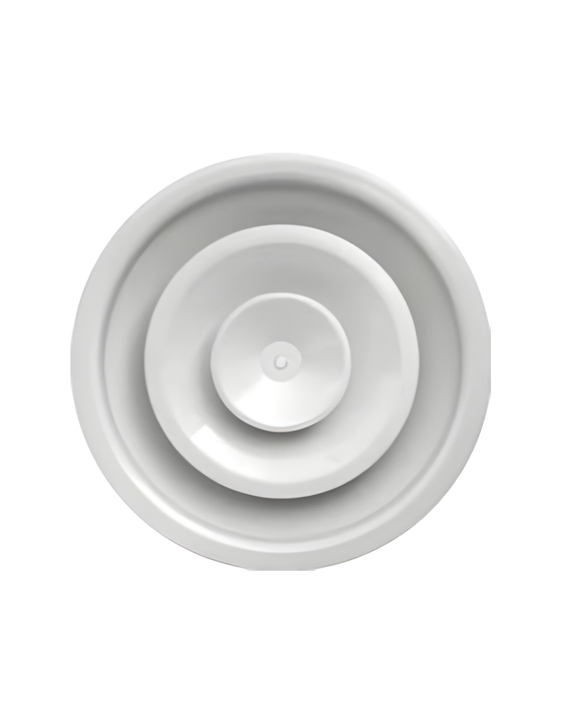 Realizzato in alluminio e acciaio verniciato bianco, offre resistenza, durabilità e un design moderno che si integra armoniosamente con qualsiasi tipo di ambiente. Cono esterno ed intermedi in alluminio, cono centrale in acciaio, vite di movimentazione in abs e razzetta in nylon. La sua struttura circolare assicura una distribuzione dell’aria silenziosa e bilanciata, migliorando le prestazioni del sistema HVAC.