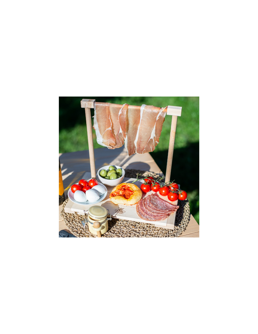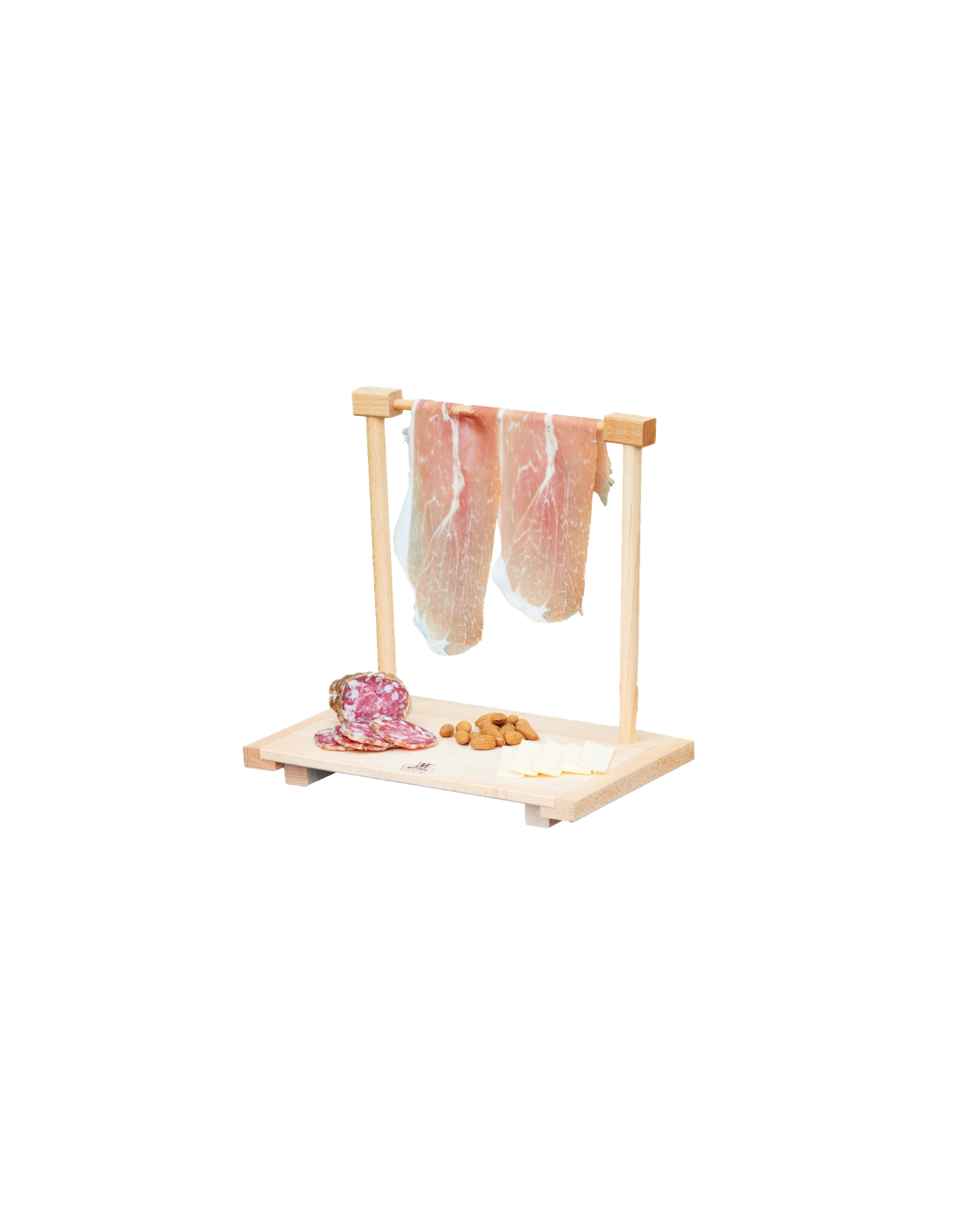 Un accessorio pratico ma anche bello da esporre, il tagliere in legno faggio con supporto stendi affettati unisce tradizione e funzionalità in un unico prodotto professionale.