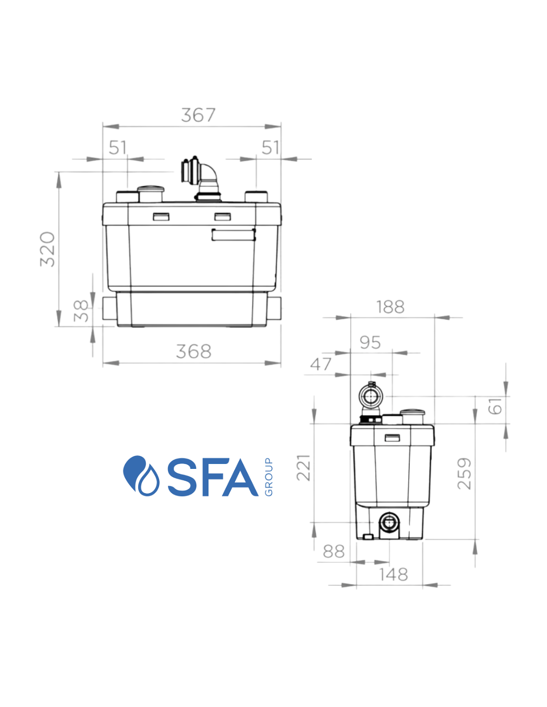 Il modello Sanivite Plus New è dotato di quattro ingressi per il collegamento simultaneo di più apparecchi, e integra un sistema di raffreddamento e protezione termica, garantendo affidabilità e lunga durata. È ideale per ambienti dove non è possibile collegarsi direttamente allo scarico principale.