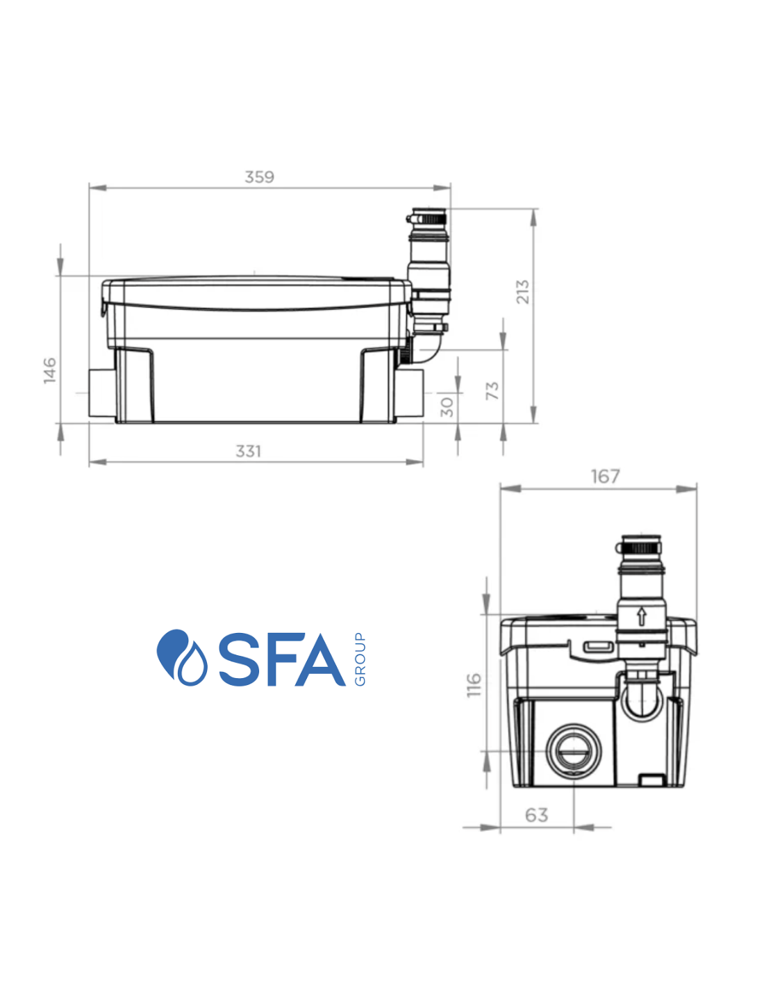 La New Sanishower Plus + è particolarmente indicata per seminterrati, taverne, sottotetti, garage o per l’aggiunta di un secondo bagno, una lavanderia o una doccia supplementare. Grazie alla qualità costruttiva SFA, rappresenta una soluzione affidabile, moderna e adatta a chi desidera installazioni rapide senza importanti opere murarie.