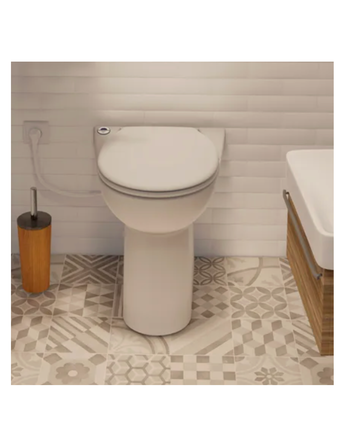 Il SFA WC con Trituratore Incorporato Sanicompact 43 Silence è una soluzione innovativa che permette di installare un WC completo in qualsiasi parte della casa, anche dove manca la possibilità di collegarsi direttamente alla colonna di scarico. Grazie al trituratore incorporato, il sistema gestisce in modo efficiente i reflui e li espelle in tubazioni di piccolo diametro, rendendo possibile il montaggio in seminterrati, mansarde o ambienti distanti dagli scarichi principali.